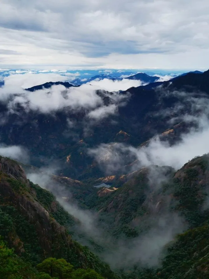 黃山天氣變化真的很大,上山時冒著小雨滴,大風,云霧繚繞,但隨著登山行進,真是一步一景,一時一色。奇松、怪石、云海一飽眼福。遠山近林在云海的變幻中時隱時現,宛如人間仙境,感嘆大自然的鬼斧神工。