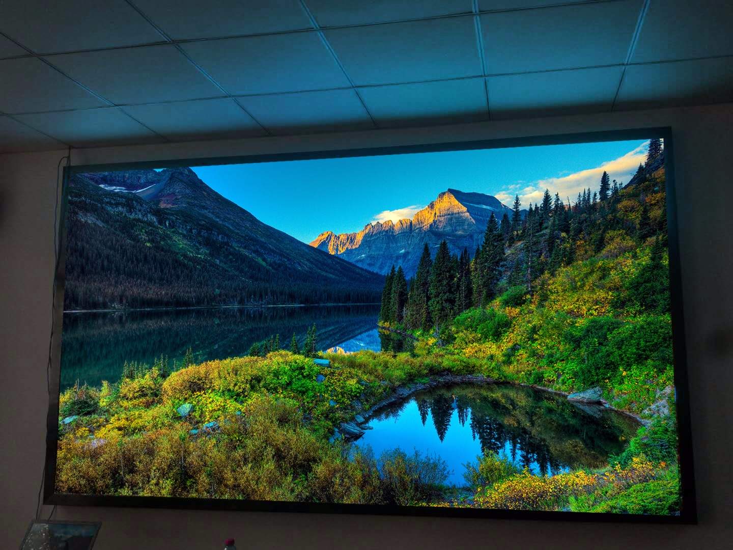 由江蘇亮彩電子有限公司為紅豆集團會議室承制的室內P2.5全彩LED顯示屏順利竣工,安裝調試完成,高清的顯示效果,為整個會議室添彩。