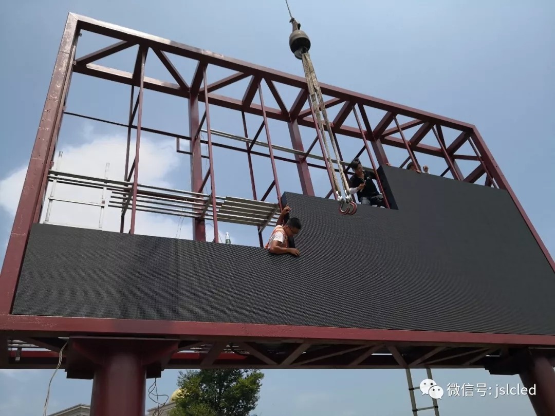該項目由江蘇亮彩承制,負責該項目的鋼架結構設計施工以及LED顯示屏顯示系統(tǒng)的整體構建。正值盛夏,亮彩工程部也一絲不茍的完成的戶外顯示屏安裝工作,江蘇亮彩團隊始終不斷提升產(chǎn)品卓越性,完善售后服務以保障完美交付每一項顯示屏安裝工程。