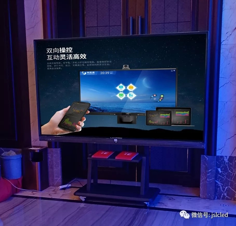 在會廳入口江蘇亮彩給參會人員展示了LED+AR屏,利亞德為提升企業會議效率所打造的液晶86吋、液晶100吋會議一體機。11月,利亞德集團正式發布消費品領域智能顯示及電視新品,以及液晶商顯產品。這是利亞德顯示產品首次亮相消費品領域,也標志著利亞德正式進軍消費市場。