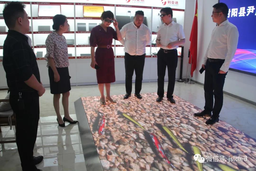尹部長一行來到利亞德(江蘇·常州)展廳,章總向各位領導介紹了利亞德品牌,led顯示特色產品,如透明屏、地磚互動屏、3D屏智慧城市建設(智慧燈桿)等,包含多類不同的應用場景。領導們親身體驗并感受LED顯示產品帶來的震撼效果。
