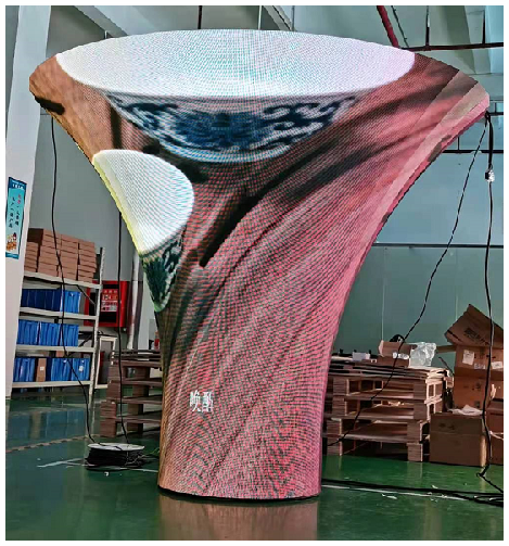 再結合模組磁柱+鋼結構的高效率安裝方式。通過豐富多樣的鋼結構設計,可將SV(soft)柔性模組根據需要拼接弧形屏,圓柱,曲面等等創意顯示屏,打造顯示多元化。